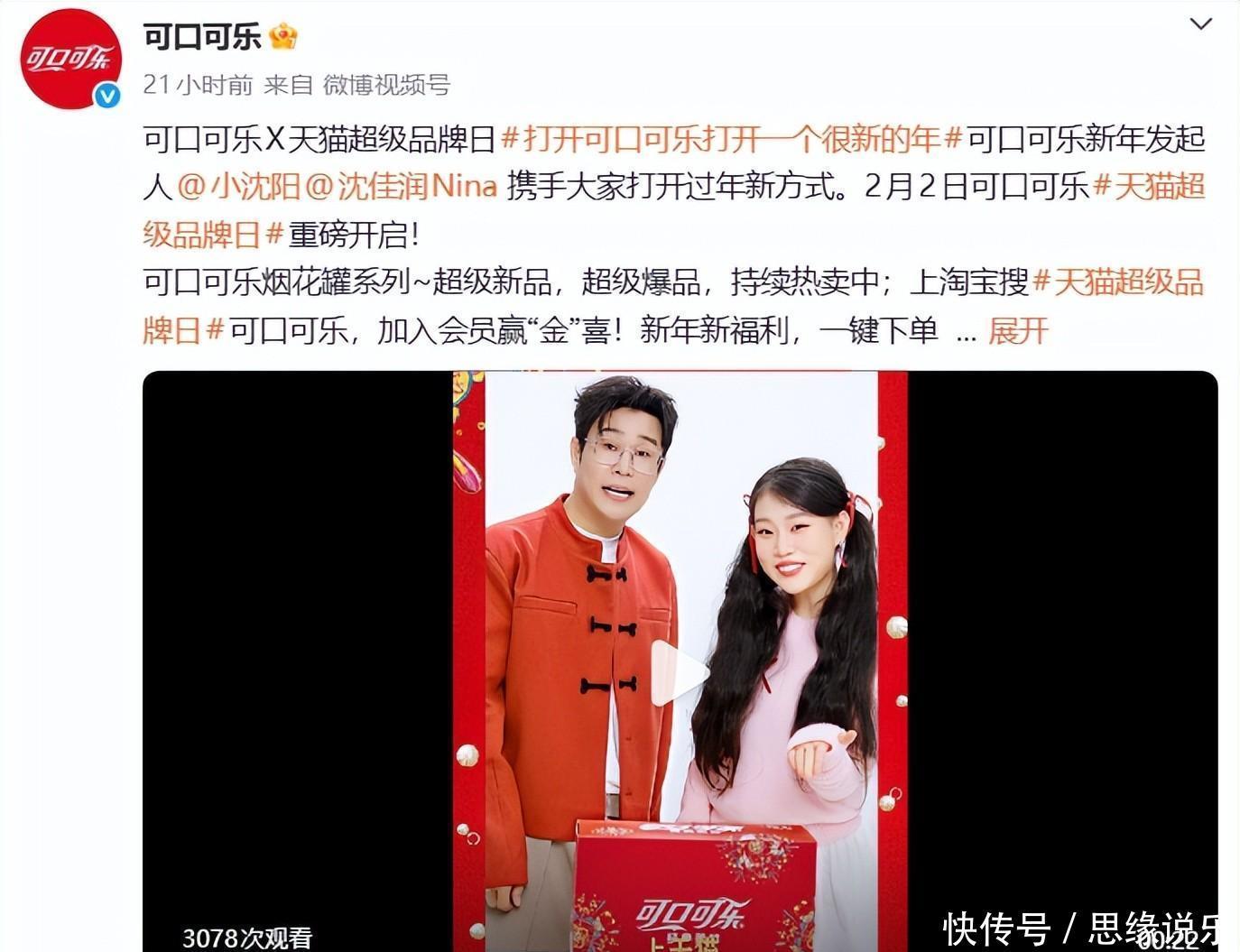 跨年那晚,沈佳润和毛不易合唱《不染》,结果跑调跑得全网皆知,这事儿还没完全翻篇呢,她又因为可口可乐的代言广告被推上风口浪尖。